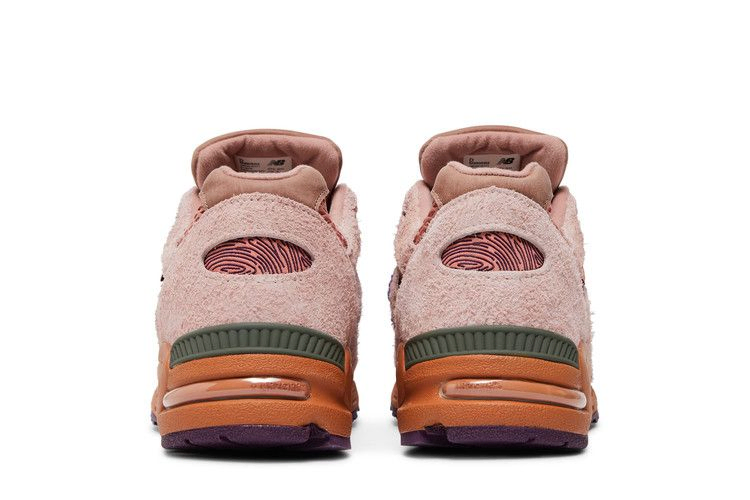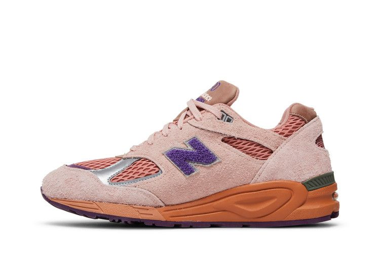 Модель Salehe Bembury x New Balance 990v2 Made in USA 'Sand Be The Time' продолжает творческое сотрудничество между известным дизайнером обуви и бостонским брендом спортивной одежды. Их пятое совместное предприятие представляет пастельную расцветку ретро-бегунов, украшенную розовой ворсистой замшей с тональной сеткой с открытыми ячейками в области носков и воротника. Фиолетовый синельный логотип "N" украшает четверть кроссовка, а на задней части пятки красуется фирменный отпечаток пальца Бембери. Многослойная конструкция опирается на промежуточную подошву ABZORB лососевого цвета, укрепленную прочной подошвой из фиолетовой резины.