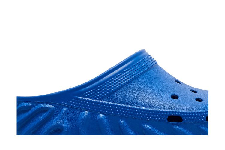 Salehe Bembury x Crocs Saru Clog 'Geneva' объединяет творческих партнеров в модели без бретелек с однотонной отделкой королевского синего цвета. Верхняя часть, созданная на основе Crocs Classic Clog, оснащена вентиляционными отверстиями для улучшения воздухопроницаемости. Двойной брендинг Crocs и Salehe Bembury появился на контурной стельке. Подошва с фирменными отпечатками пальцев Bembury характеризуется вогнутыми гребнями для прочного разнонаправленного сцепления.
