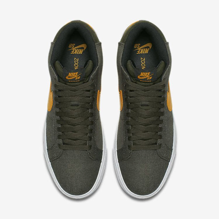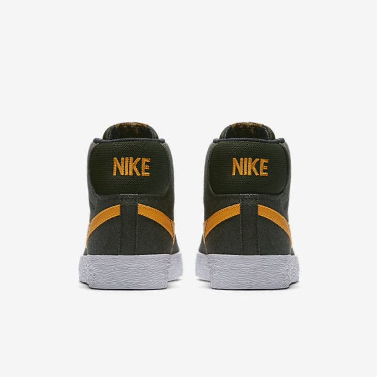 Представленные в июле 2017 года, кроссовки Undefeated x Nike Blazer Mid SB - это кивок в сторону цветовой палитры, ставшей известной благодаря различным коллаборациям Undefeated, включая редкую UNDFTD x Air Jordan 4. Это специальное издание имеет канвасовый верх в фирменном цвете "Sequoia" с соответствующими шнурками. Свуши и брендинг на пятке напоминают логотип Jumpman культовой модели. Вулканизированная подошва Zoom Air и резиновая подошва "елочка" напоминают о ретро-технологиях.