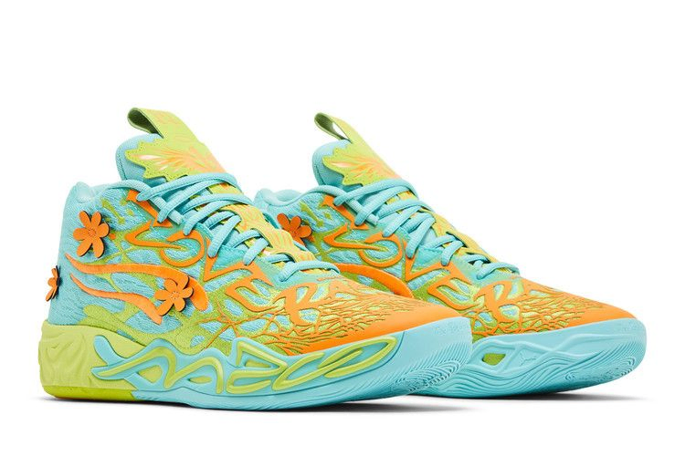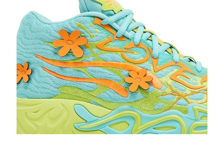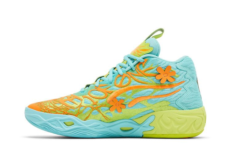 Scooby-Doo x PUMA MB.04 'Mystery Machine' представляет ностальгическую расцветку четвертой фирменной обуви ЛаМело Болла. Вдохновленный фургоном банды Mystery Inc. верх с 5D-печатью имеет бирюзовую сетчатую основу с накладками в виде инопланетных щупалец контрастного оранжевого и лаймово-зеленого оттенков. Боковые панели украшены аппликацией в виде цветов, а заднюю часть пятки украшает графика Скуби-Ду. Легкая промежуточная подошва NITROFOAM и прочная резиновая подошва PUMAGRIP.