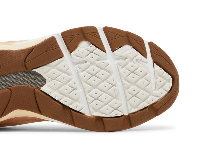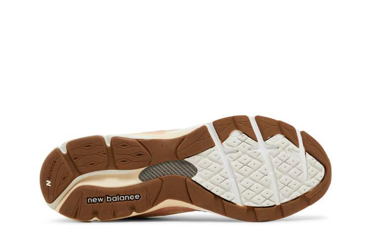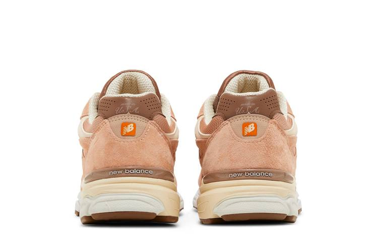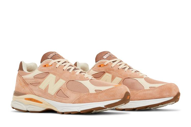 Размер? x New Balance 990v3 Made in USA 'Keepin' it Running' представляет эксклюзивную расцветку кроссовок для активного отдыха. Верхняя часть кроссовок выполнена из воздухопроницаемой сетки нежно-оранжевого оттенка с накладками из свиной замши и логотипом N кремового цвета. Контрастные коричневые акценты расположены на пятке и язычке, на которых красным шрифтом нанесена надпись "New Balance USA". Легкая амортизация обеспечивается межподошвой ENCAP от New Balance, которая состоит из мягкой пены и прочного полиуретанового обода.
