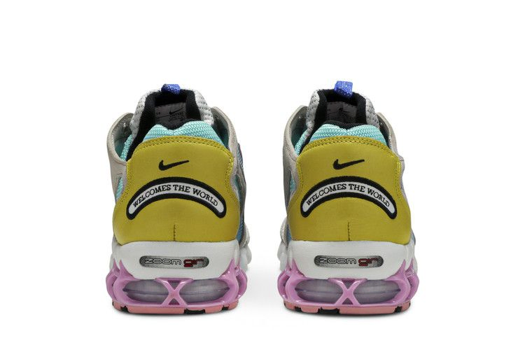 Модель size? x Nike Air Zoom Spiridon Cage 2 'Carnaby Street', созданная в сотрудничестве с британским ритейлером, выполнена в яркой цветовой гамме, вдохновленной историческим торговым районом, расположенным в лондонском Вест-Энде. Уникальная конструкция кроссовок сочетает в себе дышащую сетчатую основу с серыми замшевыми накладками и желтой кожаной панелью на пятке, которая отмечена вышитым баннером "Welcomes the World".