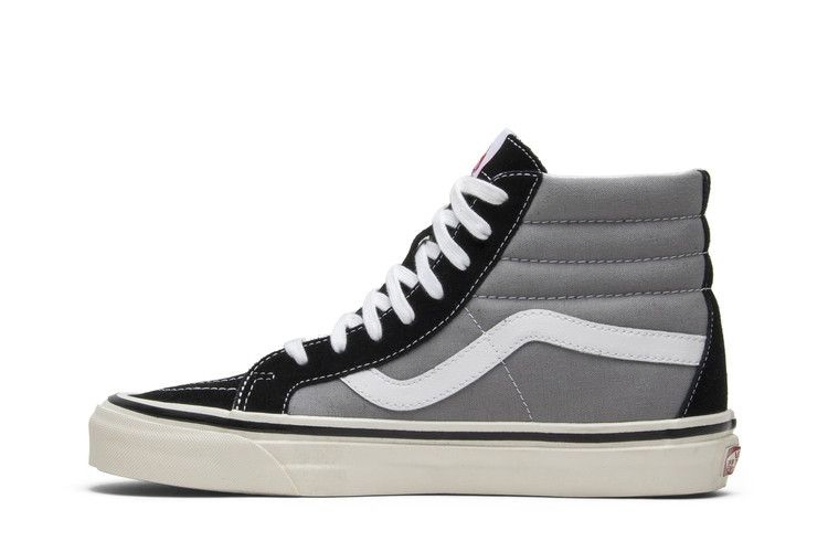Эти серо-черные Vans Sk8-Hi 38 DX отдают дань уважения первому заводу компании в Анахайме, штат Калифорния. В дизайне сочетаются современные носки UltraCush и оригинальные детали Sk8-Hi, включая оригинальный номер стиля и цветовую палитру, тяжелый 10-унцовый холст и коровью замшу, хлопчатобумажные шнурки и глянцевую лисью ленту.