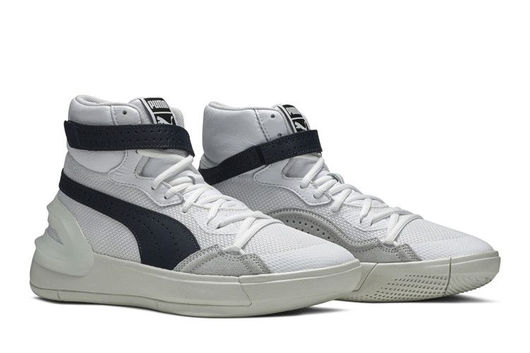 Модель PUMA Sky 'Modern' сочетает в себе ретро-баскетбольный стиль 80-х годов и современные технологии. Верхняя часть выполнена из воздухопроницаемой белой сетки, укрепленной белой кожей на мягком воротнике и перфорированной серой замшей на медиальной четверти. Регулируемый ремешок на лодыжке обеспечивает адаптивную посадку, а внешняя TPU стойка пятки обеспечивает повышенную устойчивость. Все это опирается на промежуточную подошву ProFoam, обеспечивающую легкую амортизацию и возврат энергии.