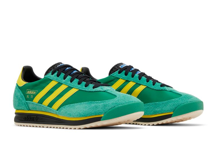 Модель adidas SL 72 RS 'Green Yellow' имеет верх из дышащего нейлона зеленого цвета с тональными замшевыми накладками. Желтые кожаные полоски украшают боковую панель, а на задней вкладке красуется клеймо adidas Trefoil. Синяя бирка adidas украшает формованный черный язычок. Полноразмерная межподошва из ЭВА желто-черного цвета обеспечивает легкую амортизацию. Кремовая резиновая подошва с зубцами обеспечивает надежное сцепление с поверхностью.