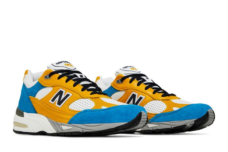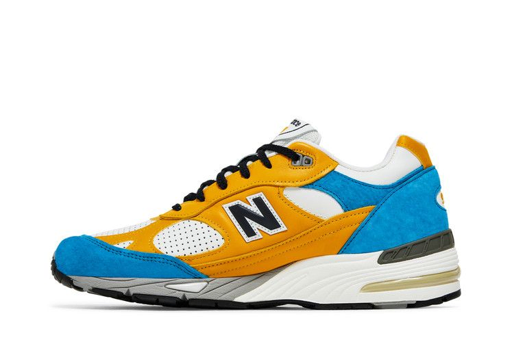 Модель Sneakersnstuff x New Balance 991 Made in England 'Blue Yellow' имеет яркие оттенки, которые вдохновляют на дебютное сотрудничество шведского ритейлера с New Balance, выпущенное в 2005 году и включающее две модели 577, созданные соучредителями SNS Питером и Эриком. Эта пара воссоздает внешний вид модели "Erik", подчеркнутый замшевыми накладками контрастного желтого и бирюзового оттенков. Белая кожаная основа кроссовок дополнена перфорированными деталями в передней части стопы для улучшения воздухопроницаемости. Двухцветная промежуточная подошва ABZORB обеспечивает легкую амортизацию при каждом шаге.