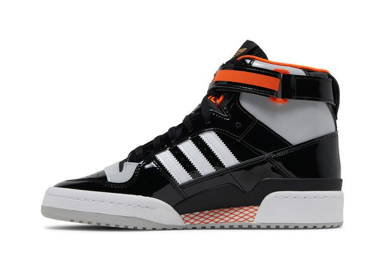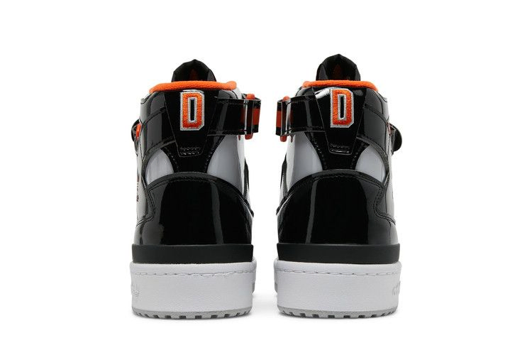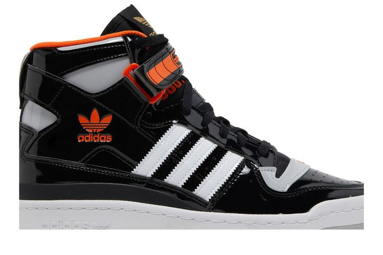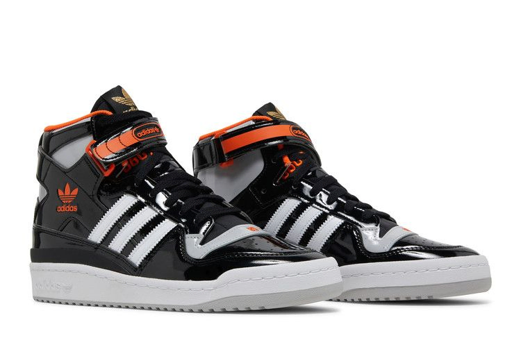Лимитированная 1 200 парами по всему миру, модель Snipes x adidas Forum 84 High 'Detroit Bad Boys' отдает дань уважения командам Pistons 89-го и 90-го годов, чей разрушительный стиль игры привел команду под руководством Исайи Томаса к двум чемпионским титулам. Сеть розничной торговли кроссовками одела винтажные кроссовки в черный лакированный кожаный верх с белыми полосками и контрастными оранжевыми акцентами. На верхней части фирменной X-образной накладки красуется трилистник adidas, а на носке каждой модели вышиты надписи "89" и "90". На язычке красуется золотисто-металлическая бирка adidas, а также номерной экземпляр кроссовка.