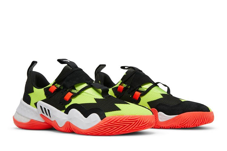 Модель adidas Trae Young 1 "Atlanta" выполнена в ярких цветах, вдохновленных рекламным щитом So So Def Recordings, расположенным недалеко от столичного аэропорта Джорджии. Дебютные фирменные кроссовки звезды НБА имеют черный и неоново-зеленый текстильный верх с полусапожками и без шнурков в носочной части. Огненно-оранжевые акценты украшают люверсы и подошву из резины с высоким коэффициентом сцепления, которая обволакивает подошву Lightstrike с амортизацией Boost в пятке. Брендинг So So Def украшает накладку на пятку и индивидуальный носок.