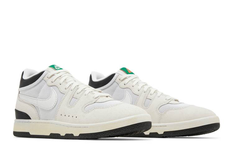Social Status x Nike Mac Attack SP 'Status Symbol' - дышащий сетчатый верх с 3M-отражающей подложкой. Накладка на носочной части из замши цвета слоновой кости контрастирует с черными кожаными деталями на воротнике и пятке. На плетеном зеленом язычке красуется несовпадающий брендинг Nike и Social Status, а на стельке указаны места розничной торговли Social Status. Кроссовки опираются на прочную подошву с винтажными белоснежными боковинами и цепкой подошвой из черной резины.- Артикул: DZ4636-100