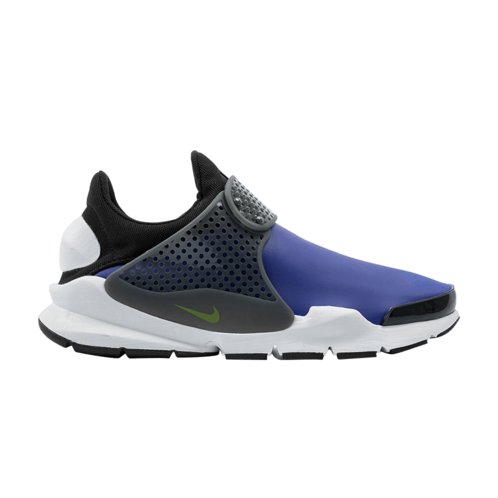 Модель Nike Sock Dart SE появилась после того, как основатель бренда Билл Боуэрман предложил трем молодым дизайнерам создать "носок с подошвой". Эта версия не сильно отличается от оригинала: цельный текстильный верх с покрытием обеспечивает удобство при носке, а пластиковый ремешок в передней части стопы - дополнительную поддержку. Эта версия выполнена в синем, черном и белом цветах с желтыми вкраплениями на брендинге и рифленой черно-белой подошвой.