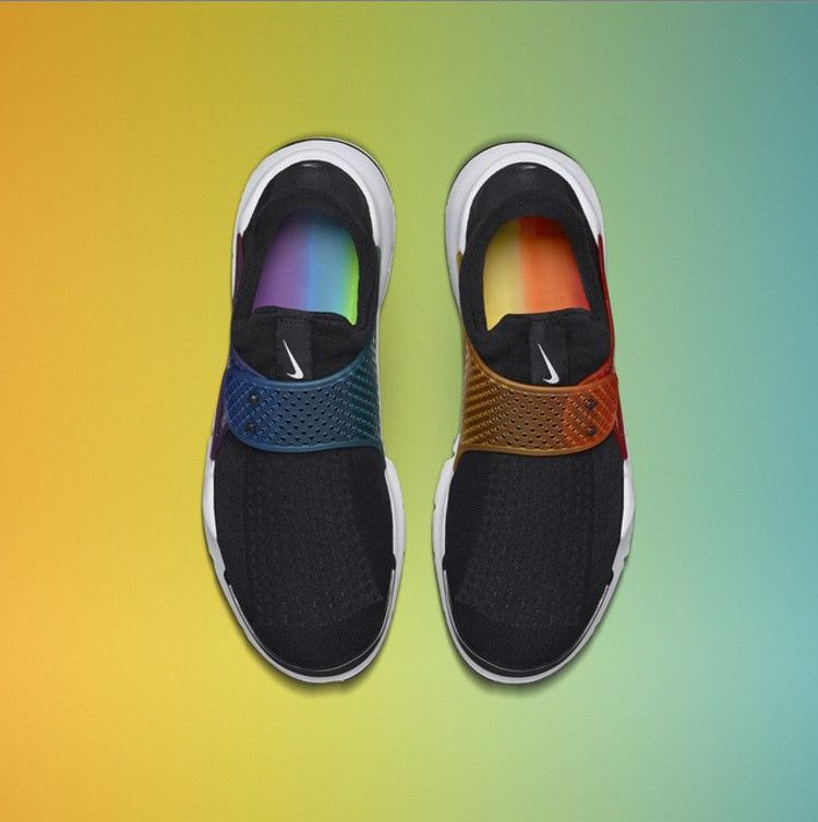 Модель Nike Sock Dart SP "Be True" была выпущена в 2015 году в знак уважения к спортсменам ЛГБТК и цели покончить с дискриминацией в спорте. Приглушенный черный сетчатый верх дополнен асимметричными разноцветными полупрозрачными ремешками в средней части стопы, сочетающимися с радужными узорами стельки с надписью "#BETRUE". Верх, напоминающий носок, опирается на белую подошву и черную резиновую подошву.