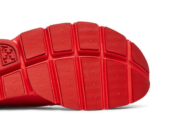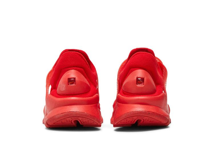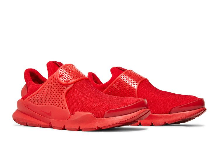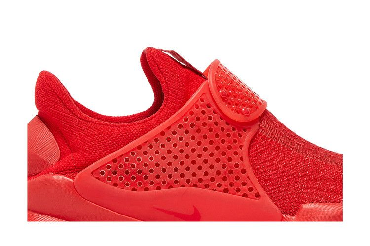 Модель Sock Dart SP, выполненная из тканого трикотажа, отличается плотной и удобной посадкой, а также тональным красным цветом. Тонкие черные акценты присутствуют на боковом мини-логотипе Swoosh, а также на подошве и язычке. Кроме того, прозрачный ремешок на средней части стопы обеспечивает плотную посадку и большую устойчивость. Эти кроссовки были выпущены вместе с полностью белой и полностью синей расцветками, демонстрируя патриотическую гордость.