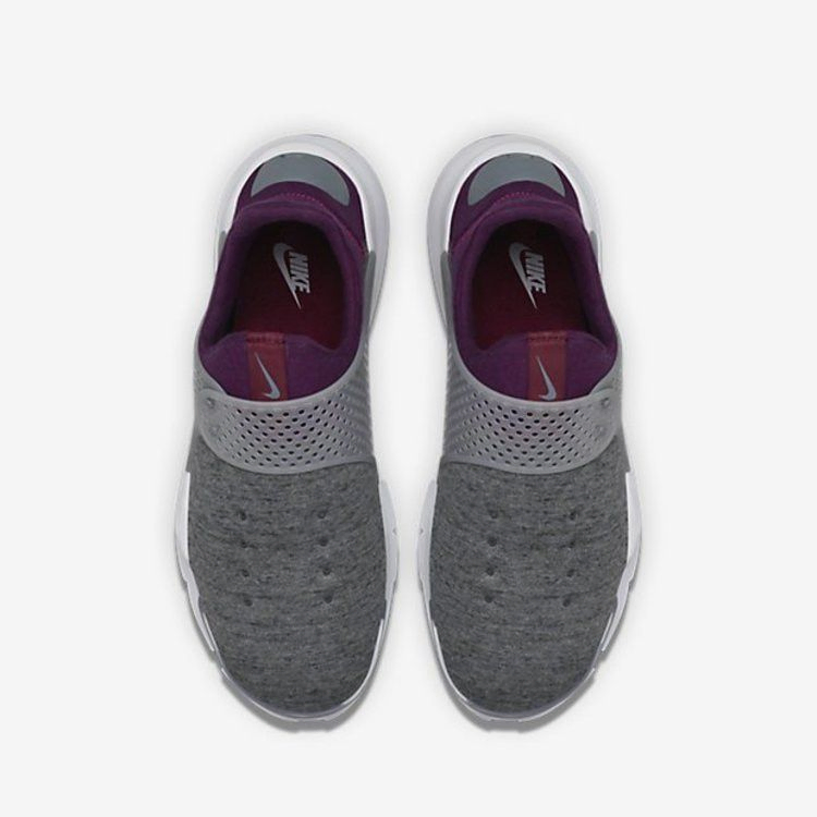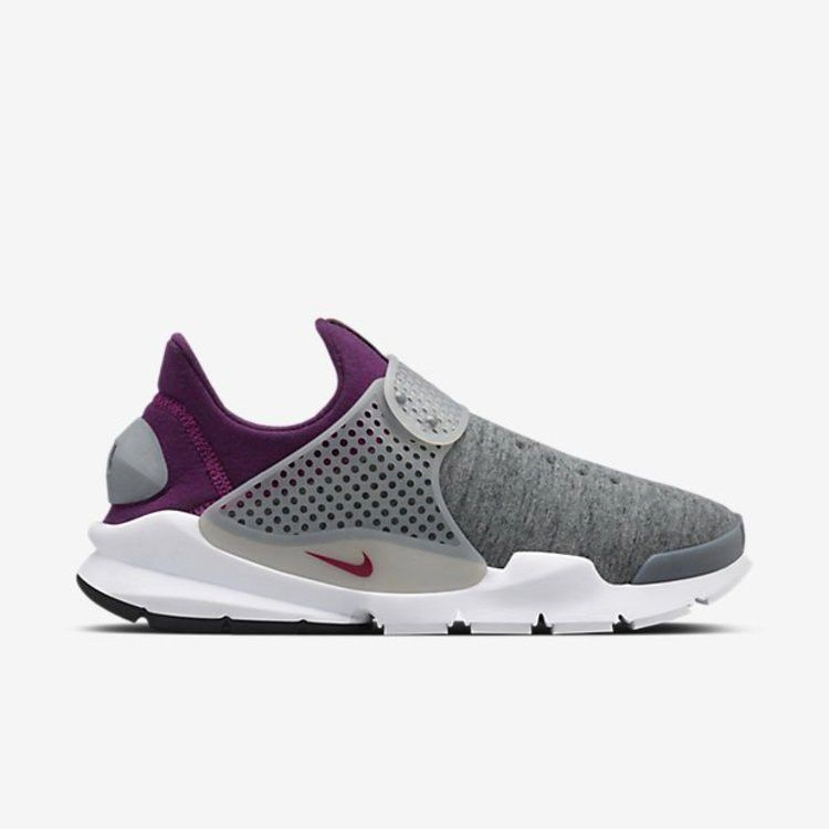 Традиционно используемый в одежде Nike Sportswear и известный своей легкой мягкостью, Nike Tech Fleece применяется в Sock Dart. Ткань используется для верха без шнурков в традиционном сером цвете, контрастируя с теплым цветом Mulberry на воротнике и пятке. Уютный двухцветный верх, дополненный регулируемым ремешком в средней части стопы, опирается на подошву из пеноматериала хрустящего белого оттенка.