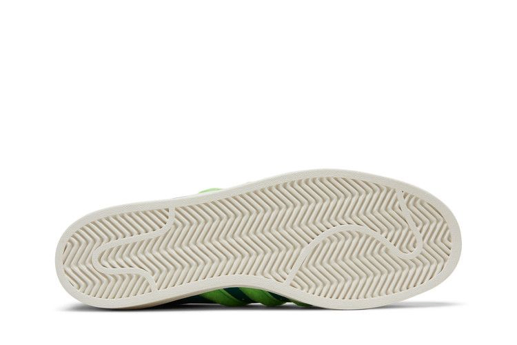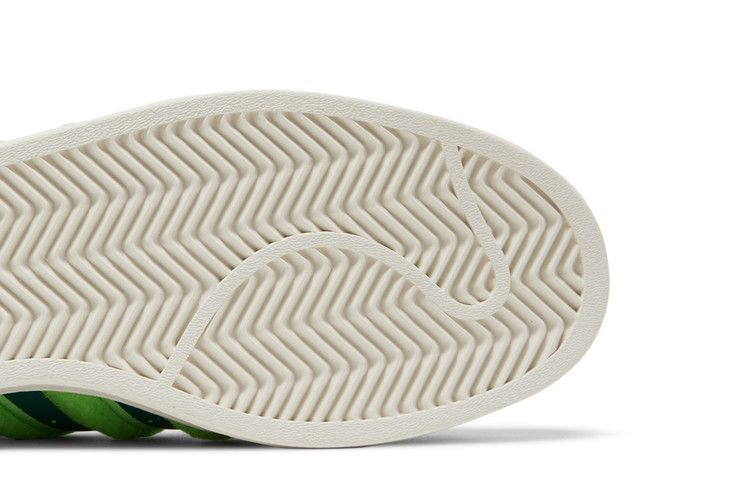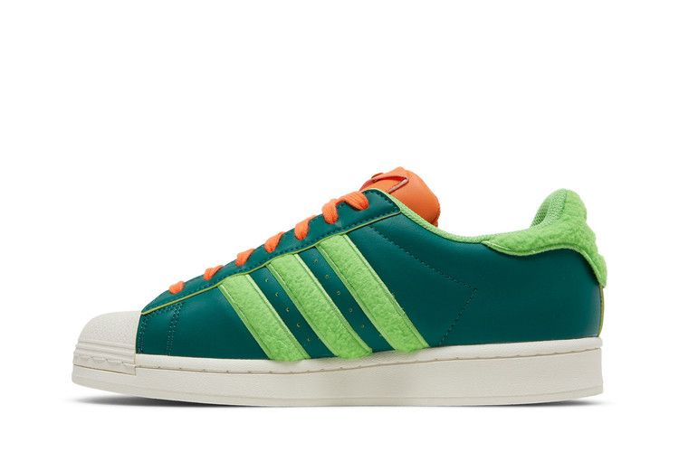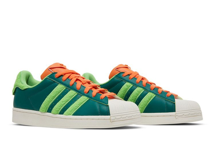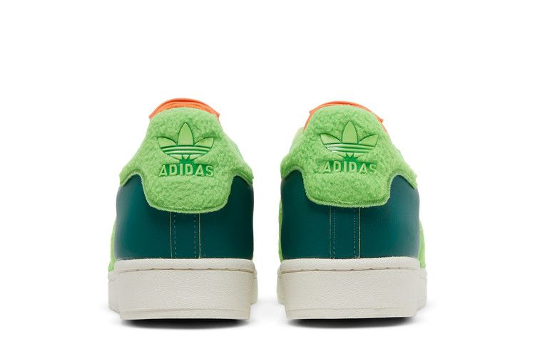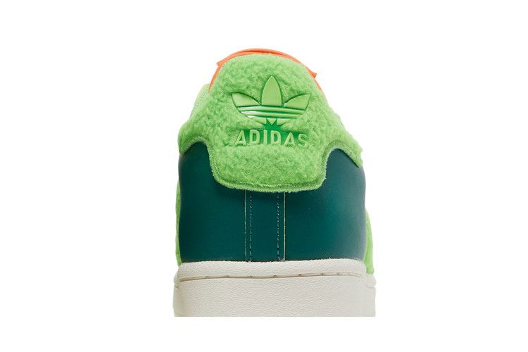 Модель South Park x adidas Superstar 'Kyle', выпущенная в рамках коллекции обуви, посвященной долгоиграющему анимационному ситкому, представляет собой красочный вариант культовых кроссовок с ракушечным носком. Вдохновленные Кайлом Брофловски, кроссовки выполнены из зеленой кожи с пушистым лаймово-зеленым текстилем на язычке пятки и фирменных трех полосках. Контрастные оранжевые акценты расположены на шнурках и язычке, последний оснащен карманом на защелке. Двойной брендинг adidas и South Park украшает носочную часть.