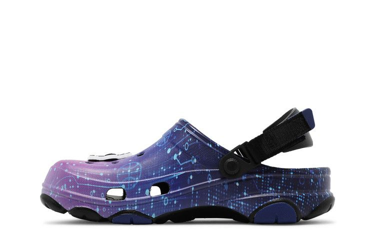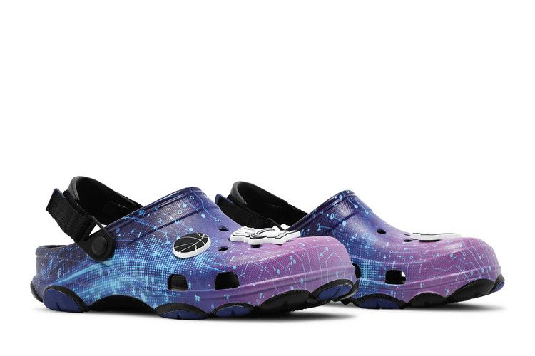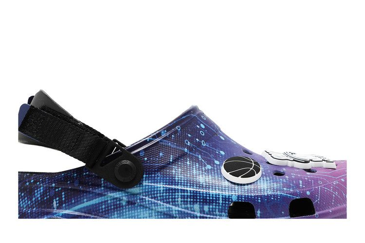 Space Jam x Crocs Classic Clog 'A New Legacy' демонстрируют уникальный дизайн, вдохновленный блокбастером ЛеБрона Джеймса в жанре экшн/анимации. Градиентная смесь фиолетового и синего цветов нанесена на верхнюю часть из вспененного материала Croslite с графикой печатной платы, напоминающей о злодейском ИИ из фильма. Вездеходные сабо оснащены вентиляционными отверстиями, регулируемым турбо-ремешком на пятке и прочной подошвой с накаткой. Сопровождающие брелоки Jibbitz включают баскетбольный мяч и логотипы Tune Squad и Space Jam.