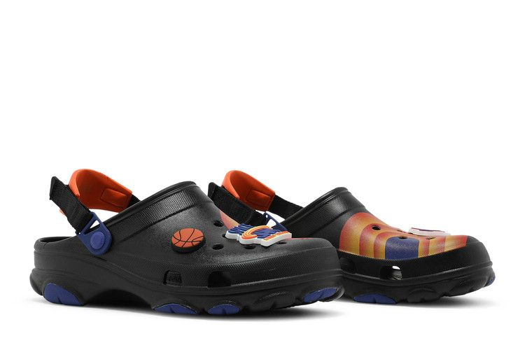 В честь выхода фильма "Космический джем: A New Legacy", Crocs Classic Clog 'Tune Squad' имеют черный верх из вспененного материала Croslite с контрастными оранжевыми и королевскими синими акцентами на регулируемом турбо-ремешке на пятке. На вершине вампа концентрические оранжевые и желтые круги отсылают к классической иконографии Looney Tunes. Графический принт дополнен набором брелоков Jibbitz с изображением баскетбольного мяча и логотипами Tune Squad и Space Jam. Подошва с шипами обеспечивает надежное сцепление с поверхностью.