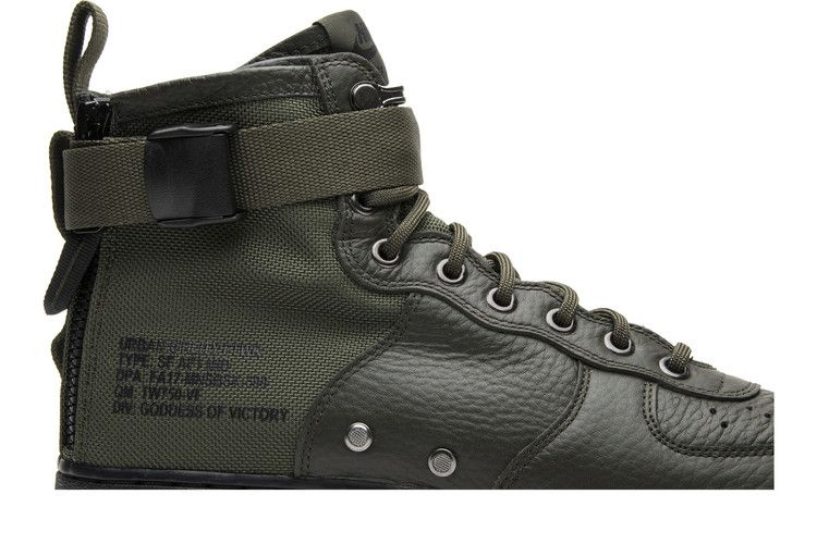 Силуэт Special Field Air Force, вдохновленный военной эстетикой, делает культовые Air Force 1 более совершенными. Модель SF Air Force 1 Mid 'Sequoia' имеет верх из премиальной кожи Sequoia с перфорацией в области носка и небольшими округлыми вентиляционными отверстиями на боковой стороне для воздухопроницаемости. Кроссовки также оснащены панелью из баллистического нейлона, двойной молнией для удобной посадки, регулируемым ремешком на лодыжке и амортизирующим блоком Air.