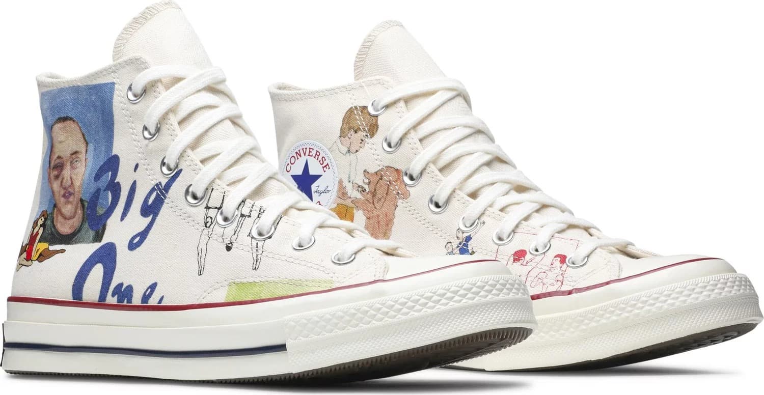 Модель Spencer McMullen x Converse Chuck Taylor All Star 70 High "People Print", созданная в сотрудничестве с иллюстратором из Флориды, вышла в рамках серии Converse Artist Series, в которой представлены работы творческих личностей, отобранных Тайлером. Нарисованные от руки персонажи Спенсера украшают холщовый верх, подчеркнутый фирменными деталями, такими как нашивка All Star и крылатая строчка на язычке. Контрастные красные и синие полоски выделяют резиновую подошву Off-White.