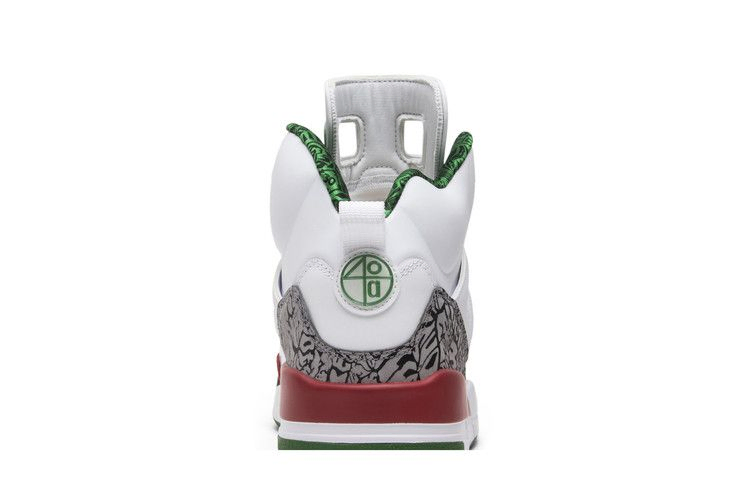 Созданная в честь культовой рекламы Air Jordan Спайка Ли с Майклом Джорданом в главной роли, модель Jordan Spizike 'OG' 2014 года представляет собой сочетание нескольких различных итераций кроссовок. Кроссовки имеют промежуточную подошву и подошву AJ3, "крылья" AJ4, сетку AJ5, язычок AJ6 и графику AJ20 на подкладке. Белые кроссовки украшены черными, зелеными и красными цветами для создания фирменного образа.