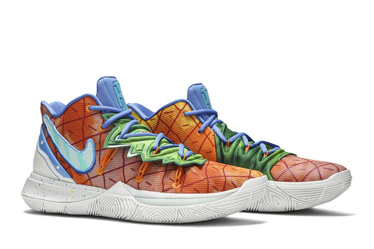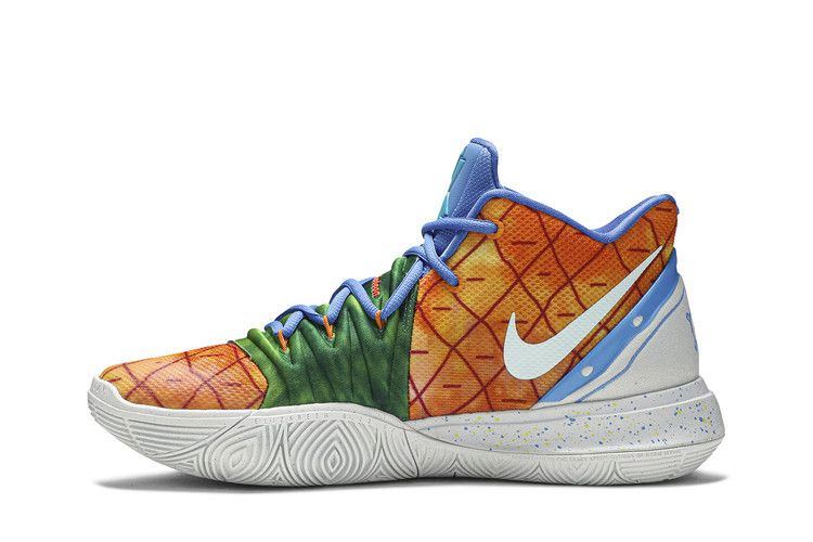 После выпуска кроссовок, вдохновленных главными героями сериала, в октябре 2019 года появились кроссовки SpongeBob SquarePants x Kyrie 5 'Pineapple House'. Вдохновленный резиденцией Губки Боба на Конч-стрит, 124, верх кроссовок напоминает ананас, дополненный лиственным покрытием шнурков. Брендинг Nickelodeon на язычке и мультяшный Swoosh на пятке подтверждают принадлежность к коллаборации. Дополнительные детали представлены в виде графики корабельного колеса на пятке, стельки с принтом Губки Боба и крапчатой подошвы.
