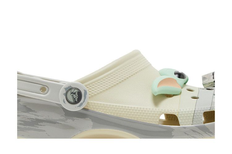 Модель Star Wars x Crocs Classic Clog 'Grogu' отдает дань уважения персонажу, которого в просторечии называли малышом Йодой. Нейтральные серые и коричневые оттенки использованы в корпусе из формованного пеноматериала, вентиляционные отверстия расположены по всей носочной части, а поворотный ремешок на пятке обеспечивает надежную фиксацию. На заклепках и литой стельке красуется изображение Грогу, а заднюю часть пятки украшает брендинг "Звездные войны". В качестве украшения можно использовать эксклюзивный набор брелоков Jibbitz.