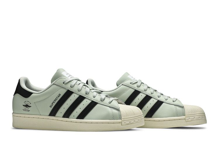 Модель Star Wars x adidas Superstar "The Child", выпущенная в рамках коллекции "The Mandalorian", вдохновлена персонажем, которого в народе называют малышом Йодой. Кожаный верх кроссовок выполнен в льняно-зеленом цвете и украшен контрастными черными полосками и графикой "The Child" на боковой пятке. На язычке напечатан текст на алфавите Ауребеш из "Звездных войн", посвященный 50-летию создания силуэта Superstar.