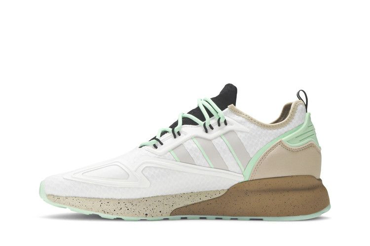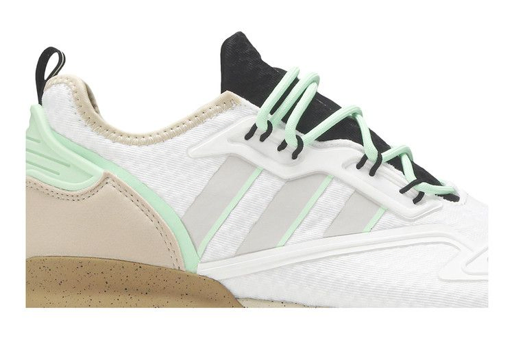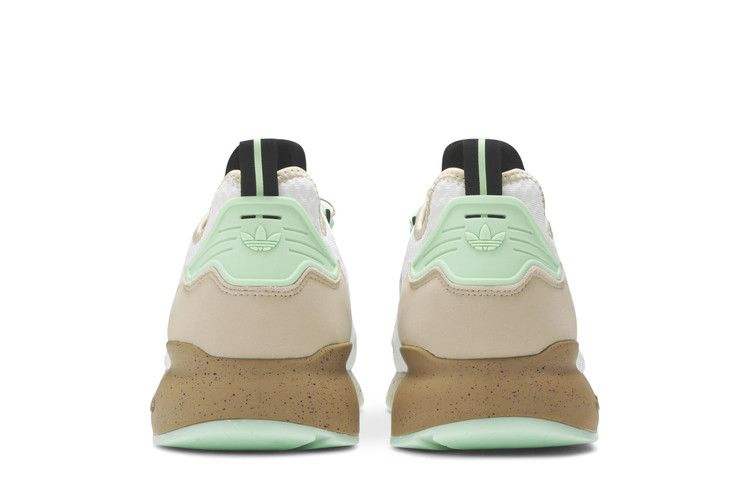 Модель Star Wars x adidas ZX 2K Boost "Mudhorn" взята из коллекции "The Mandalorian" и представлена в белом сетчатом верхе с контрастными акцентами цвета загара и мятно-зеленого. Отличительная палитра призвана вызвать в воображении образы Мандалорианца и Ребенка, он же Малыш Йода, а на носках изображена встреча героев со свирепым существом, известным как Мадхорн. В результате этого противостояния у героев появляется знак Мадхорна, воссозданный на графике в верхней части язычка.