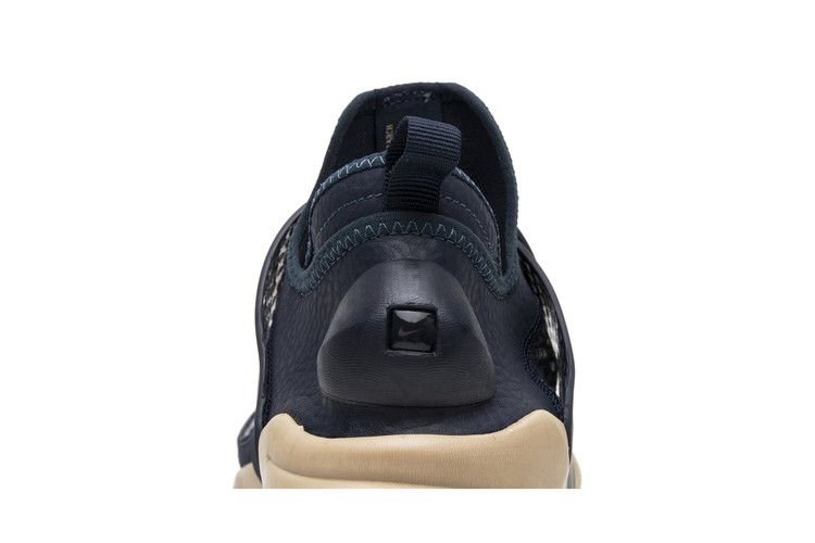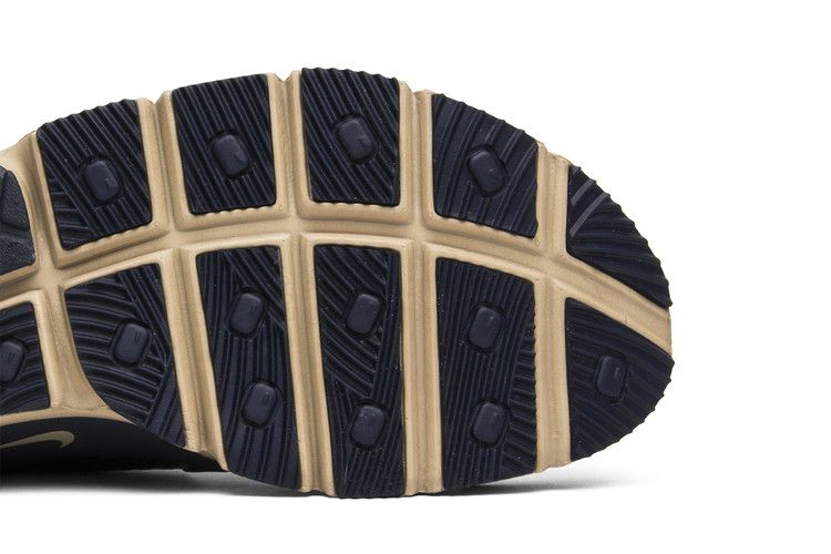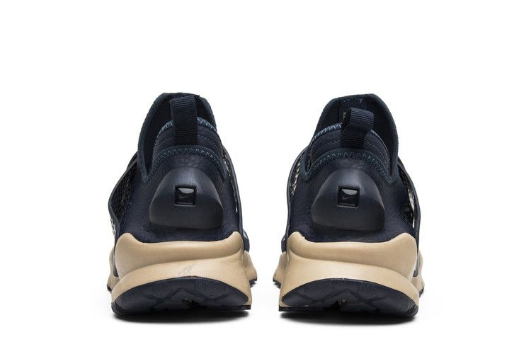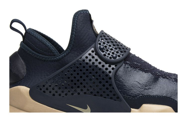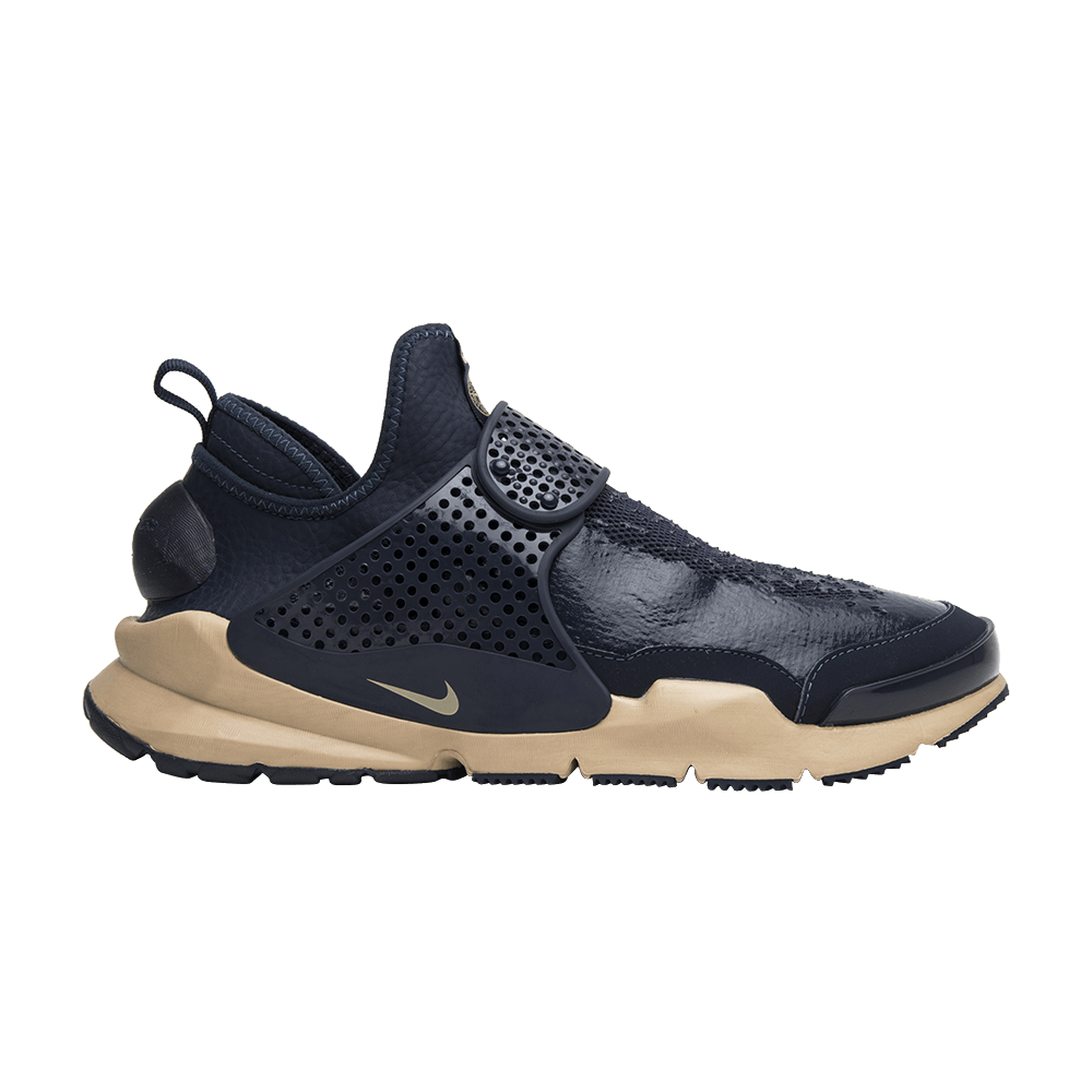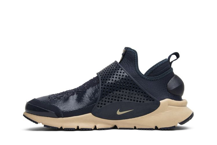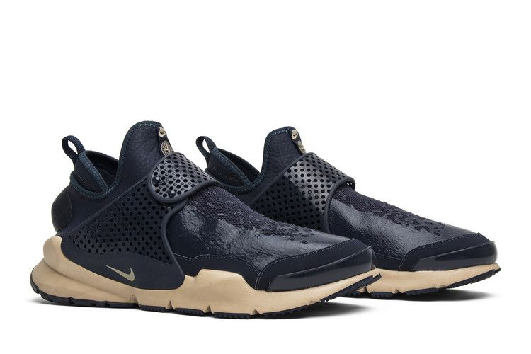 Эта коллаборация NikeLab с итальянским брендом Stone Island представляет Sock Dart Mid SP в цвете "обсидиан". Верх из гиперэластичной сетки Obsidian синего цвета с водостойким силиконовым блеском, а также воротник Ariaprene, подкладка из полиспандекса и регулируемый ремешок на ноге. Язычок украшен совместным брендингом Nike и Stone Island. Верхняя часть кроссовок имеет промежуточную подошву из пеноматериала Orewood Brown Duralon и черную подошву с обновленным рисунком прорези для улучшения сцепления и рассеивания воды. Модель Stone Island x NikeLab Sock Dart Mid SP была выпущена в январе 2017 года вместе с черным и секвойным вариантами.