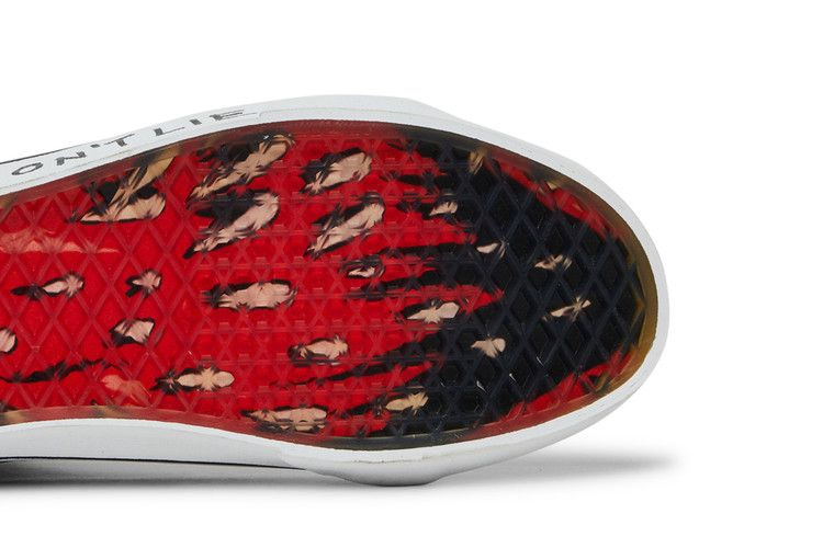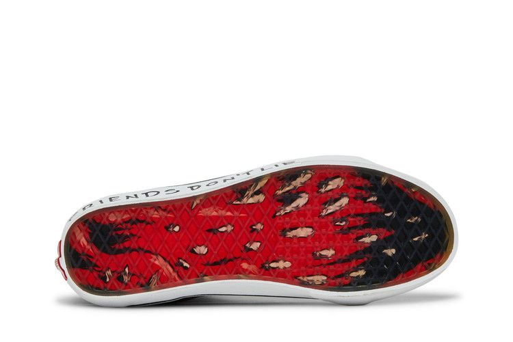 Выпущенные в рамках капсульной коллекции, посвященной популярному сериалу Netflix, Stranger Things x Vans Sk8-Hi Reissue 'Upside Down' имеют верх из черного холста и замши с черными кожаными боковыми полосками. Каждая боковая полоса украшена графикой, нанесенной методом трафаретной печати: на боковой стороне изображен багровый Демогоргон, а на противоположной - банда Хокинса на велосипедах. Логотип Stranger Things выбит тональным шрифтом на накладке пятки, а цитата Eleven "Friends Don't Lie" ("Друзья не лгут") вписана в белую резиновую подошву. Под подошвой полупрозрачной вафельной подошвы видны острые как бритва зубы Демогоргона.- Артикул: VN0A2XSBY09