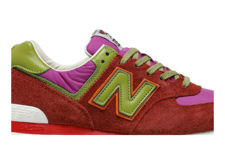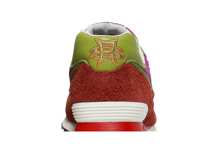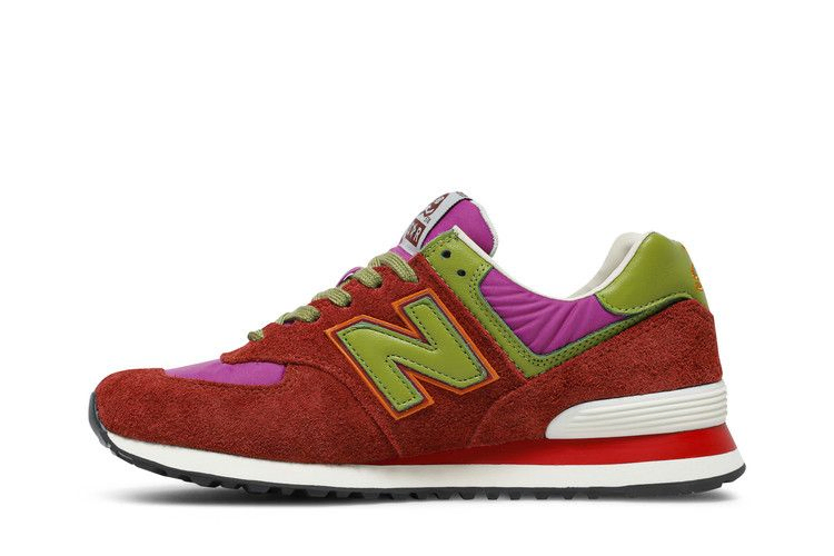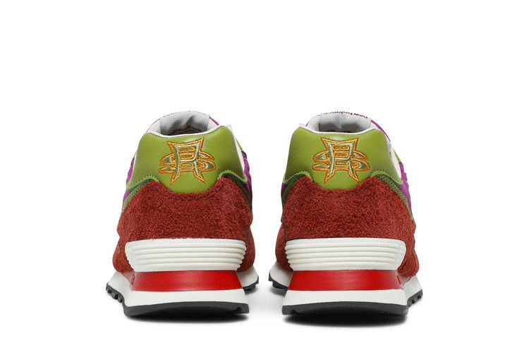 Stray Rats x New Balance 574 'Red' - это классический силуэт с диссонансным сочетанием цветов в соответствии со смелой эстетикой бренда уличной одежды. Верхняя часть сочетает в себе пурпурную нейлоновую основу с текстурированными замшевыми накладками кирпично-красного оттенка. Контрастные зеленые цвета украшают шнурки, логотип 'N' и кожаный язычок на пятке. На последней детали, а также на носочной части и тканом язычке красуется брендинг Stray Rats. Легкая амортизация обеспечивается за счет промежуточной подошвы из ЭВА с прочным ободом ENCAP.