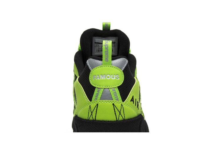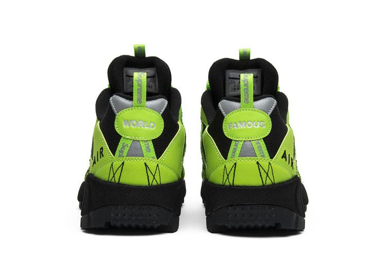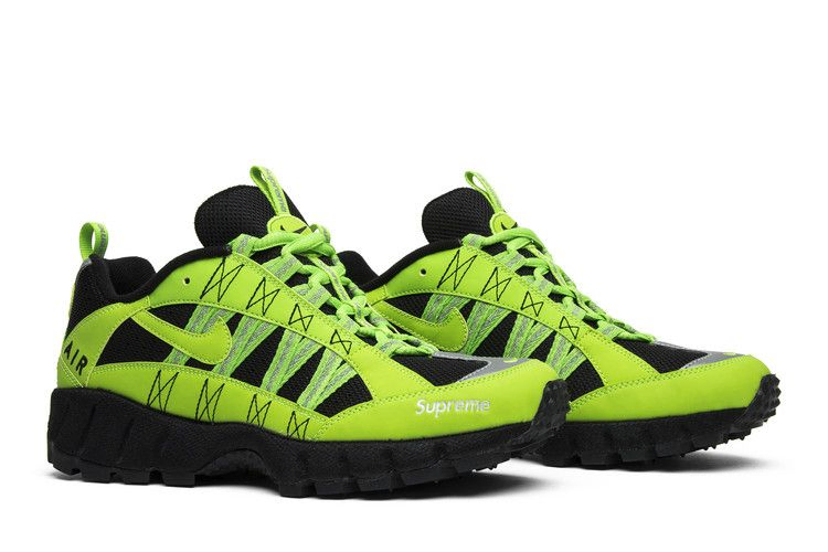 Supreme в сотрудничестве с Nike вернули Air Humara из 1990-х. Supreme x Air Humara 17 'Green' имеют легкий черный сетчатый верх с ярко-зелеными акцентами на брызговике, заднике, накладках, брендинге Swoosh и на тросах, поддерживающих шнурки. Кроссовки также имеют надписи "WORLD" и "FAMOUS" на каждой пятке и толстую промежуточную подошву с амортизацией Nike Air.