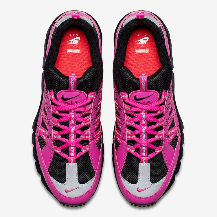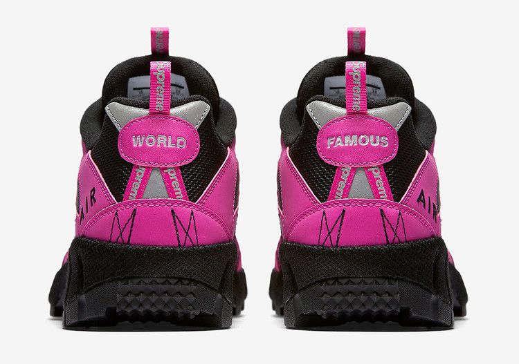 Модель Supreme x Air Humara 17 'Pink' воскресила давно забытые беговые кроссовки Air Humara из архивов Nike. Созданная влиятельным дизайнером ACG Питером Фоггом в 1998 году, модель Air Humara была вдохновлена колесом и передним дисковым тормозом мотоцикла. Эта модель сочетает в себе верх из черной сетки с 3M-отражающим эффектом и нубука Fire Pink с серебристыми акцентами из 3M-отражающего металла, блок Nike Air в пятке и Zoom Air в носочной части. На носке, язычке и пятке имеется фирменная надпись Supreme, а на пятке - надписи "World" и "Famous".