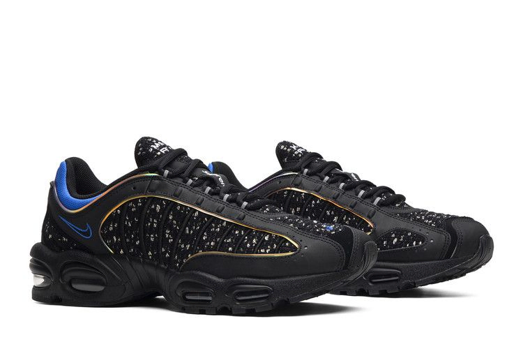 Инновационные кроссовки, впервые представленные в 1999 году, получили новую модель от нью-йоркского бренда Supreme, специализирующегося на уличной одежде. Модель Supreme x Air Max Tailwind 4 "Black Cobalt" имеет верх из буклированной ткани с кожаными накладками и отделкой Hyper Cobalt на пятке. Благодаря ярко выраженным блокам Air Max в пятке и носочной части, а также вафельной подошве BRS 1000, эта пара премиум-класса сохраняет свою первоначальную амортизацию и сцепление.