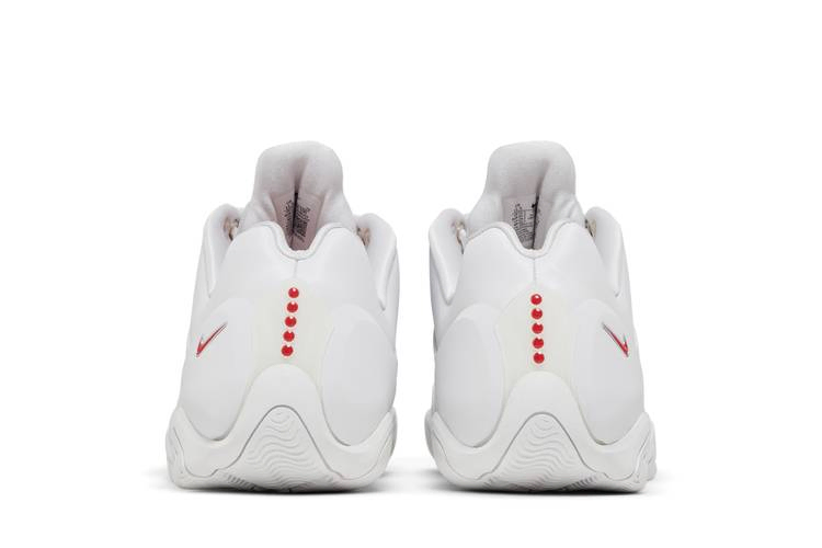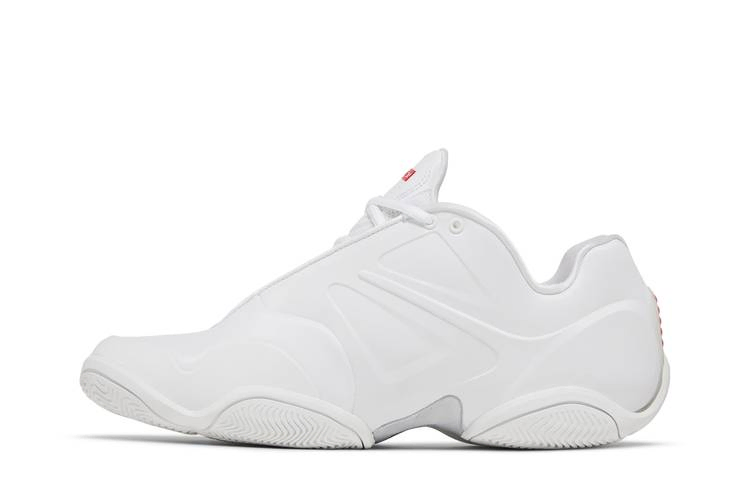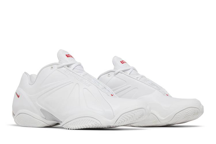 Модель Supreme x Nike Air Zoom Courtposite 'White', созданная в рамках совместного проекта из трех частей, возвращает ретро-теннисные кроссовки из архива начала 2000-х годов. Верхняя часть, выполненная из литого материала Posite чистого белого цвета, имеет скульптурные линии и тональную резиновую накладку на передней части стопы. На боковом веке выбита надпись "Supreme", а на язычке красуется сварной логотип Supreme в красно-белом цвете. Дополнительные малиновые акценты расположены на носочной части с двойной маркой, миниатюрах на носке и боковой пятке, а также пяти точках, выстроившихся в ряд на задней части пятки, - кивок в сторону давно не существующего проекта Alpha Project от Nike. Промежуточная подошва из скрытой пены поддерживается прочной резиновой подошвой и посеребренным голенищем из TPU.