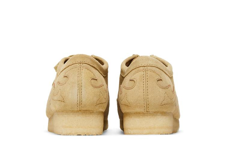 Модель Supreme x Clarks Original Wallabee 'Maple', созданная эксклюзивно для нью-йоркского скейт-бренда, вошла в коллаборацию из трех частей. Силуэт, напоминающий чукку, одет в замшу цвета загара с тональными аппликациями по всему верху. Логотип Supreme выбит на боковой пятке, а на стельке красуется двойной логотип Supreme и Clarks. Шнуровка установлена на фирменную подошву Clarks из натурального крепа, обеспечивающую надежное сцепление с поверхностью и амортизацию.