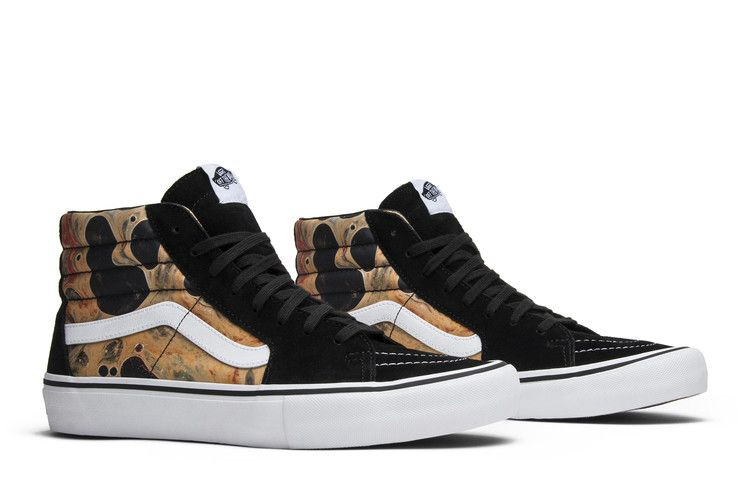 Эта модель Sk8-Hi - результат сотрудничества Vans, Supreme и скандального художника Андреса Серрано. На боковых панелях красуется мотив Серрано "Кровь и сперма", а также белая полоса Jazz. Носок, люверсы и пятка также отделаны черной замшей. Кроссовки были выпущены в сентябре 2017 года в пакете "Кровь и сперма" вместе с аналогичными по тематике Old Skools и Chukkas.