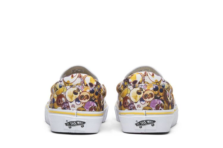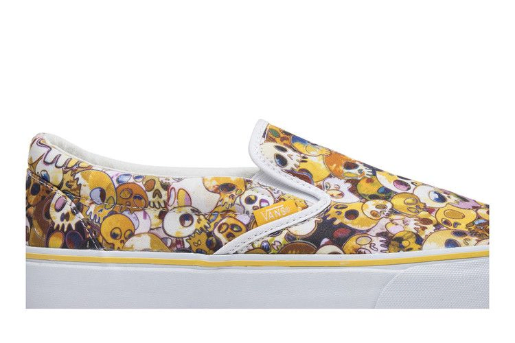 Такаши Мураками - художник, работающий в смешанных техниках и использующий яркие формы и цвета. Его работы, как известно, посвящены аниме и японской поп-культуре. Модель Takashi Murakami Slip-On LX 'Yellow Skull' посвящена творчеству Мураками. Низкие кроссовки с канвасовым верхом, покрытым принтами в виде черепов, напоминающими мотивы других его работ, также имеют классический дизайн Vans Slip-On и вулканизированную подошву. Кроссовки были выпущены вместе с тремя футболками с аналогичной тематикой.