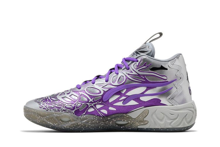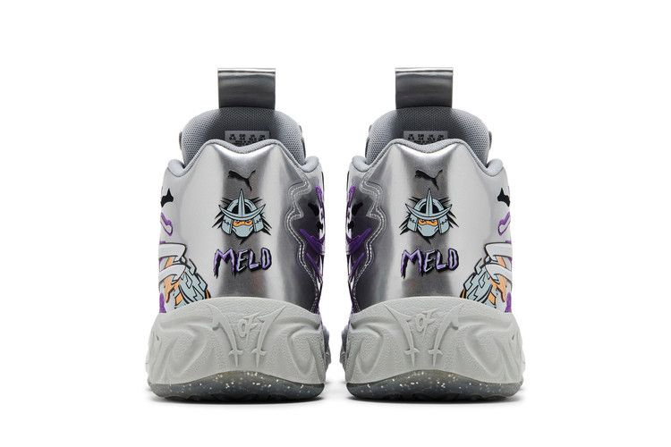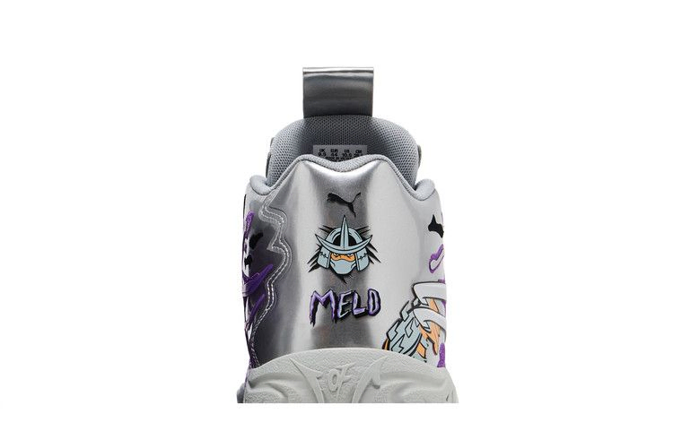 Модель Teenage Mutant Ninja Turtles x PUMA MB.04 'Shredder', выпущенная ограниченным тиражом в 444 пары, отдает дань уважения главному антагонисту команды по борьбе с преступностью. Серебристый металлик покрывает верхнюю часть, а замысловатые накладки с фиолетовым оттенком напоминают щупальца пришельцев в знак уважения к теме ЛаМело Болла "Не отсюда". Боковую пятку украшает крупный графический рисунок, изображающий стальные когти Шреддера, а на задней части пятки - брендинг PUMA и надпись "MELO".