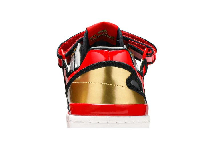 Модель The Simpsons x adidas Forum Low 'Duff Beer', созданная на основе капсульной коллекции, посвященной долгоиграющему мультсериалу, отдает дань уважения любимому пиву Гомера Симпсона. Верхняя часть модели выполнена из искусственной кожи, вдохновленной банкой пива Duff Beer, с красными, серебряными и золотыми оттенками в блестящей металлической отделке. Дополнительный намек на пиво сделан в виде язычка с логотипом Duff и украшений на шнурке в виде банки Duff. Кроссовки установлены на прочную резиновую подошву с танкеткой из EVA для легкой амортизации.