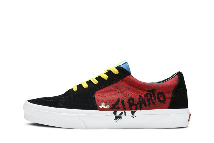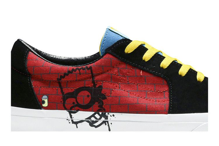 Выпущенные в рамках обширной коллекции, посвященной тридцатилетию культового мультсериала, The Simpsons x Vans Sk8-Low 'El Barto' имеют верх, сочетающий черную замшу с контрастным красным канвасом на боковых панелях. Последние напоминают кирпичную стену, испещренную граффити от рук альтер-эго Барта Симпсона, занимающегося вандализмом. Яркий синий цвет украшает замшевый язычок и индивидуальную стельку, отмеченную двойным брендингом Vans и Simpsons.
