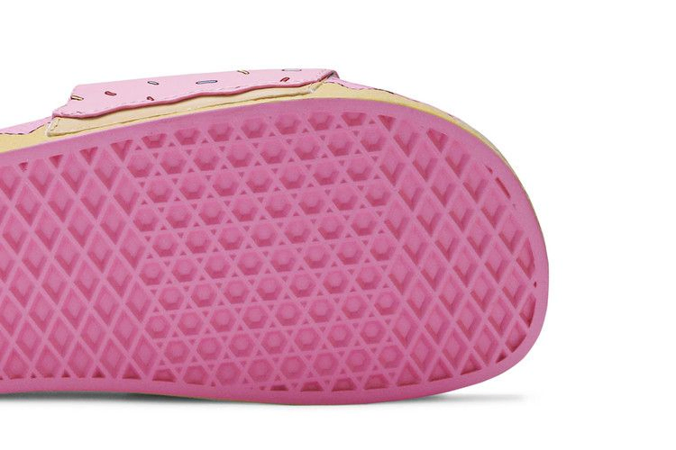 Выпущенные в рамках обширной коллекции, посвященной культовому мультсериалу, The Simpsons x Vans Slide-On 'Pink D'ohnut' посвящены любимому кондитерскому лакомству Гомера Симпсона и украшены иллюстрированной посыпкой на ярко-розовой основе. Легкая конструкция сочетает в себе формованную стельку из полиуретана с анатомической поддержкой свода для большего комфорта и ремешок из искусственной кожи с мягкой текстильной подкладкой.