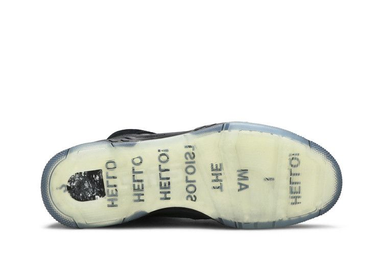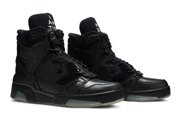Кеды Converse TheSoloist x ERX-260 Hi 'I Am The Soloist' - это бунтарский взгляд японского модельера Такахиро Мияситы на баскетбольную модель 80-х годов. Вдохновленная музыкой панк-рок и техническим стилем, эта модель марта 2019 года имеет полностью черную конструкцию, выполненную из премиальной замши и кожи. Съемная молния заменяет традиционную систему шнуровки и придает обуви вид, напоминающий боевые ботинки. На язычке вышита фраза "I am the Soloist", а прозрачная подошва демонстрирует графический принт "Hello! Я - Солист. Привет! Привет! Привет?", написанная на подошве.