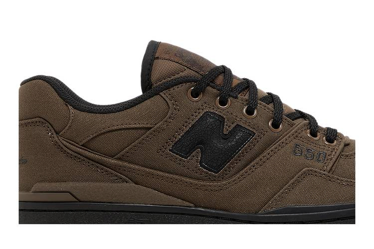Модель thisisneverthat x New Balance 550 'Brown' взята из совместного пакета из трех предметов, созданного в партнерстве с корейским брендом уличной одежды. Низкие кроссовки выполнены из коричневого холста, украшенного фирменным логотипом "N" из черной потрескавшейся кожи. Двусторонняя тканая бирка украшает нейлоновый язычок, а логотипы NB и thisisneverthat вышиты на задней части пятки каждого кроссовка. В основе кроссовок лежит черная резиновая подошва с внутренней танкеткой из пеноматериала для легкой амортизации.