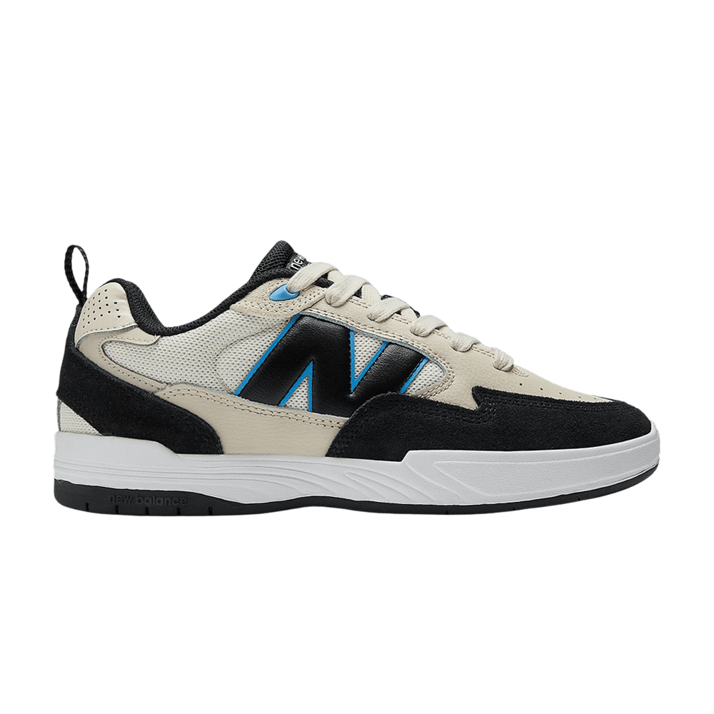 В модели Tiago Lemos x New Balance Numeric 808 Lite 'Tan Black' использован сетчатый верх белого цвета, дополненный тональной кожей и черными замшевыми накладками. На задней панели красуется логотип N, выполненный из черной кожи, с пудрово-синей окантовкой, сочетающейся с литыми люверсами из TPU и тисненым логотипом N на задней части пятки. Низкие кроссовки установлены на прочную резиновую подошву с полноразмерной амортизацией ABZORB.