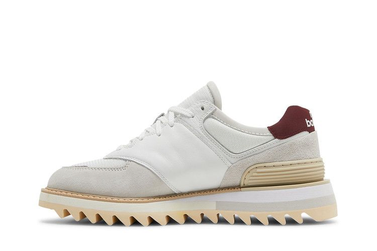 Tokyo Design Studio x New Balance 574 'Nimbus Cloud Classic Burgundy' переосмысливает ретро-кроссовки с минималистичным дизайном и обновленными технологиями. Команда TDS, разместившаяся в японском концептуальном магазине T-House от New Balance, одела кроссовки в белый сетчатый верх, вдохновленный архивной моделью 60-х годов, получившей название Trackster. Традиционный логотип 'N' удален, но кожаное седло, замшевые накладки и внешняя стойка пятки остались нетронутыми. Брендинг New Balance нанесен на бордовый кожаный язычок на пятке, что придает обуви единственный цветовой оттенок. Подошва с рифленой подошвой Vibram обеспечивает максимальное сцепление с поверхностью.