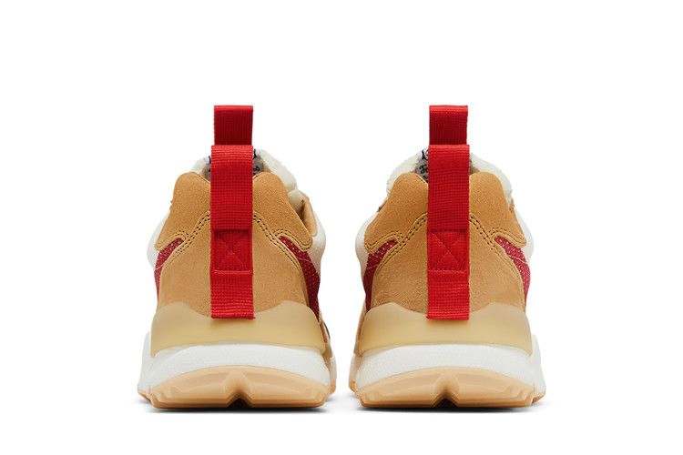 Tom Sachs x Nike Mars Yard 3.0 - это полностью обновленные модели с подошвой из натуральной резины, мягкой амортизацией из пеноматериала React и голенищем из углеродного волокна для большей отдачи энергии и устойчивости в средней части стопы. Пересмотренная система шнуровки фиксирует верхнюю часть, изготовленную из воздухопроницаемой белой сетки с бежевыми замшевыми накладками и красным логотипом Swoosh. Черная крышка носка из TPU обеспечивает дополнительную прочность, а малиновые вставки на язычке и пятке облегчают надевание и снятие.