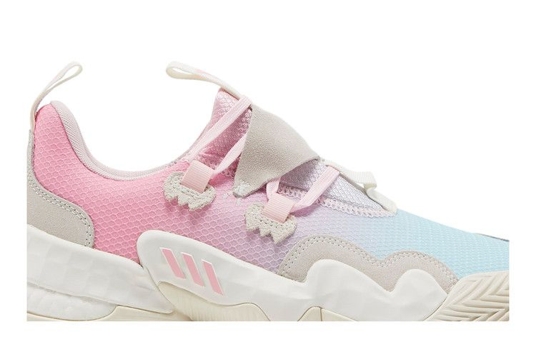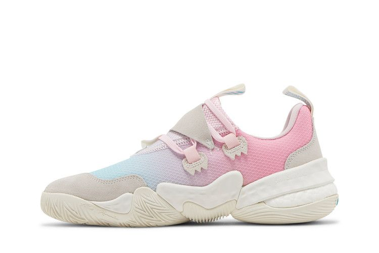 Модель adidas Trae Young 1 'ICEE' представляет собой одну из вводных расцветок дебютной фирменной обуви звезды НБА. Это официальная коллаборация с брендом замороженных напитков. Верхняя часть кроссовок выполнена из текстиля в розово-голубой гамме, вдохновленной сахарной ватой. Личный логотип Трэя украшает язычок, а графика ICEE - накладки на пятке. Обтекаемая форма, созданная по образцу adidas N3XT L3V3L, включает в себя полусапожки с застежкой-шнурком, которая ограничена средней частью стопы. Пастельные оттенки верха дополнены белой межподошвой с амортизацией Boost в пятке и пеной Lightstrike в носочной части.