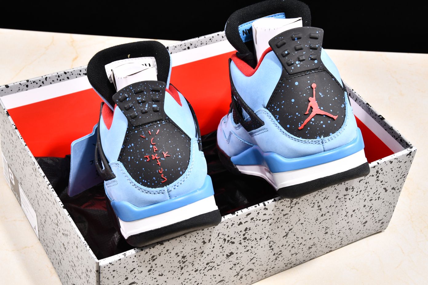 Музыкант Трэвис Скотт родом из Хьюстона, где Ойлерз выходили на поле в красной, белой и синей форме. Трэвис Скотт x Air Jordan 4 Ретро в цветовой гамме «Кактус Джек» отдает дань уважения ушедшей городской футбольной команде. Черная кружевная клетка и пяточная вставка с голубым узором в виде пятен. Марка Cactus Jack появляется на левой пятке в цвете Varsity Red, и с соответствующим логотипом Jumpman справа. Кроссовки дропнуты в июне 2018 года за 225 долларов и пришли исключительно в мужских размерах. Если вы поклонник Трэвиса Скотта и AJ 4, эта пара - еще одна обязательная вещь.- Цвета: University Blue/Varsity Red-Black