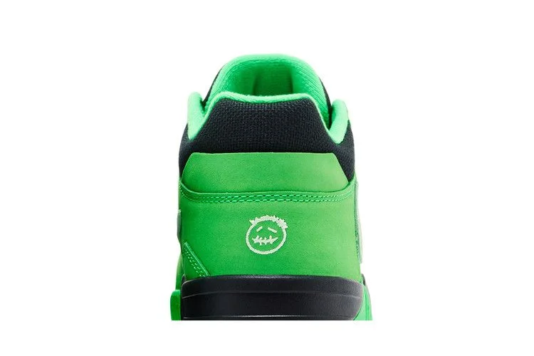 Кроссовки Travis Scott x Air Jordan Jumpman Jack TR «Green Spark» придают пышные акценты ретро-силуэту хьюстонского рэпера. Верх, закрепленный традиционными шнурками и регулируемым ремешком в передней части стопы, сочетает черную кожаную основу с яркими зелеными накладками из нубука. Более светлый оттенок зеленого отличает элементы брендинга, в том числе обратный логотип Swoosh, украшающий боковую сторону. На язычке вышитый логотип Jumpman, а заднюю часть пятки украшает логотип Cactus Jack. Под ногами на резиновой подошве крупными рукописными буквами написано «JACK».