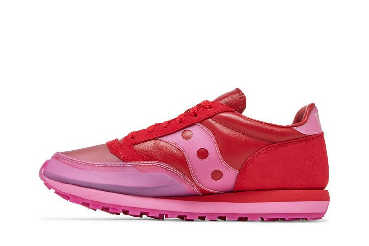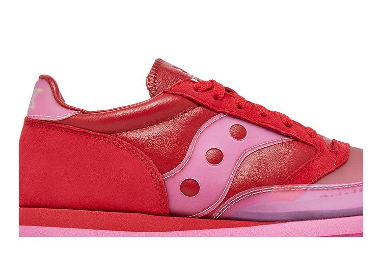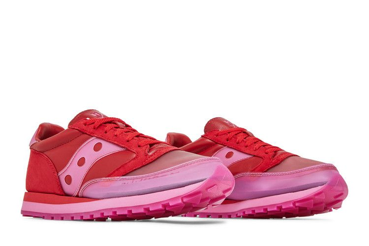 Модель Hommewrk x Saucony Jazz 81 "Trinidadian Heritage", разработанная в сотрудничестве с брендом одежды Тринидада Джеймса, имеет характерную двухцветную палитру, вдохновленную щавелем - напитком, приготовленным из высушенных лепестков гибискуса. Верхняя часть изготовлена из малиновой кожи с отделкой из замши, подобранной по цвету, на заднике и пятке. Розовый полупрозрачный TPU расположен на носочной накладке, логотипе реки и язычке пятки, с надписями 'HMME' и 'WRK' на левой и правой стороне кроссовка. Двухцветная промежуточная подошва из ЭВА обеспечивает легкую амортизацию и плавный ход.